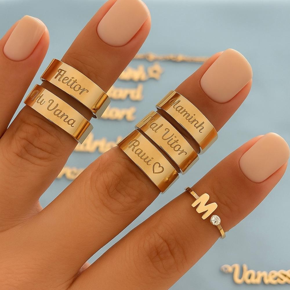 Foto ilustrativa na modelo, vendido somente um anel Largo personalizável